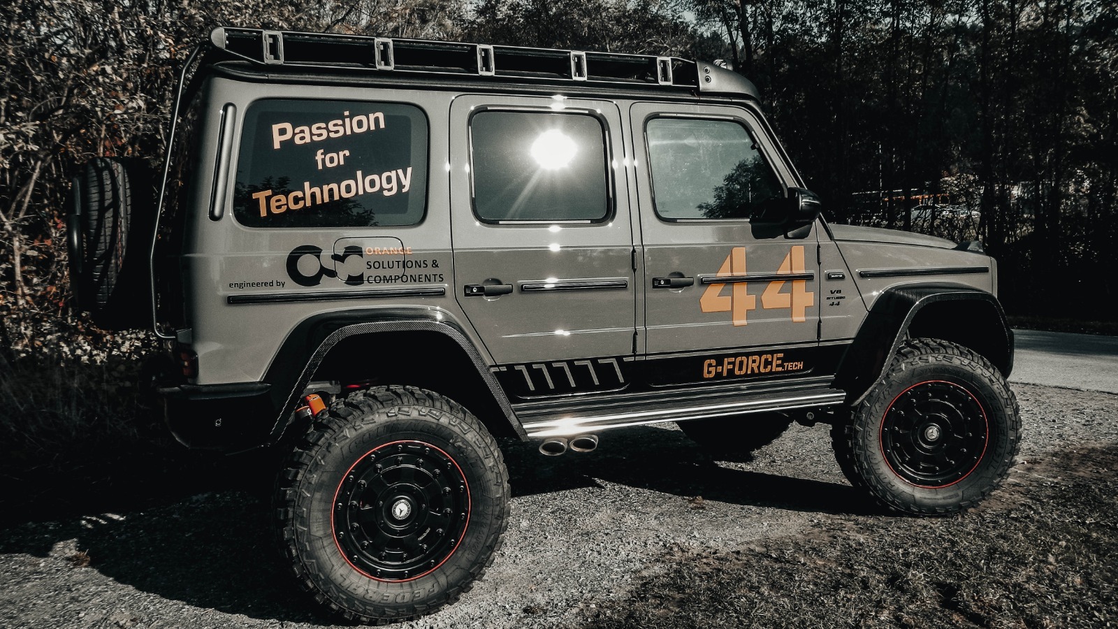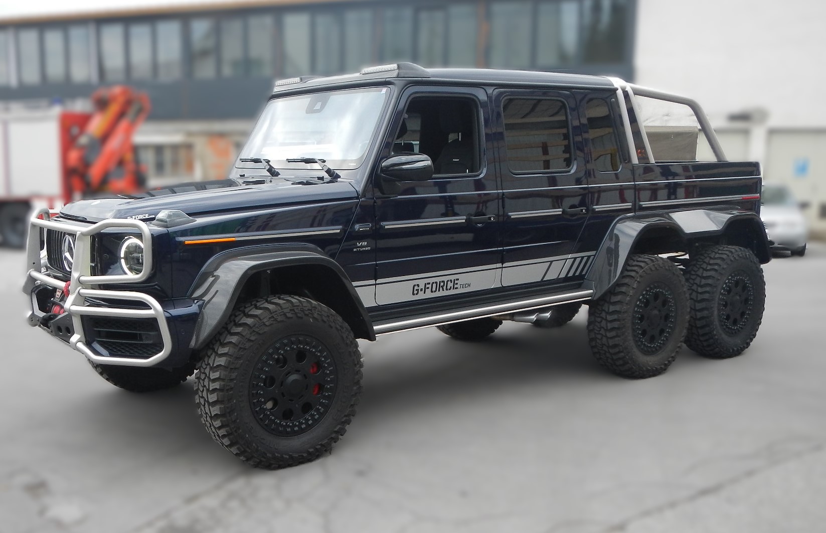 - additional third axle with lengthwise and crosswise 100% differential lock